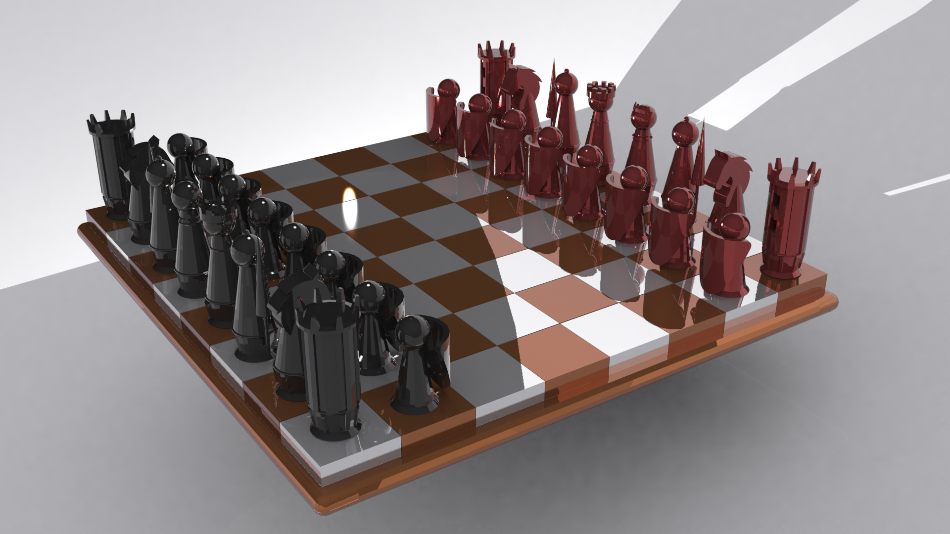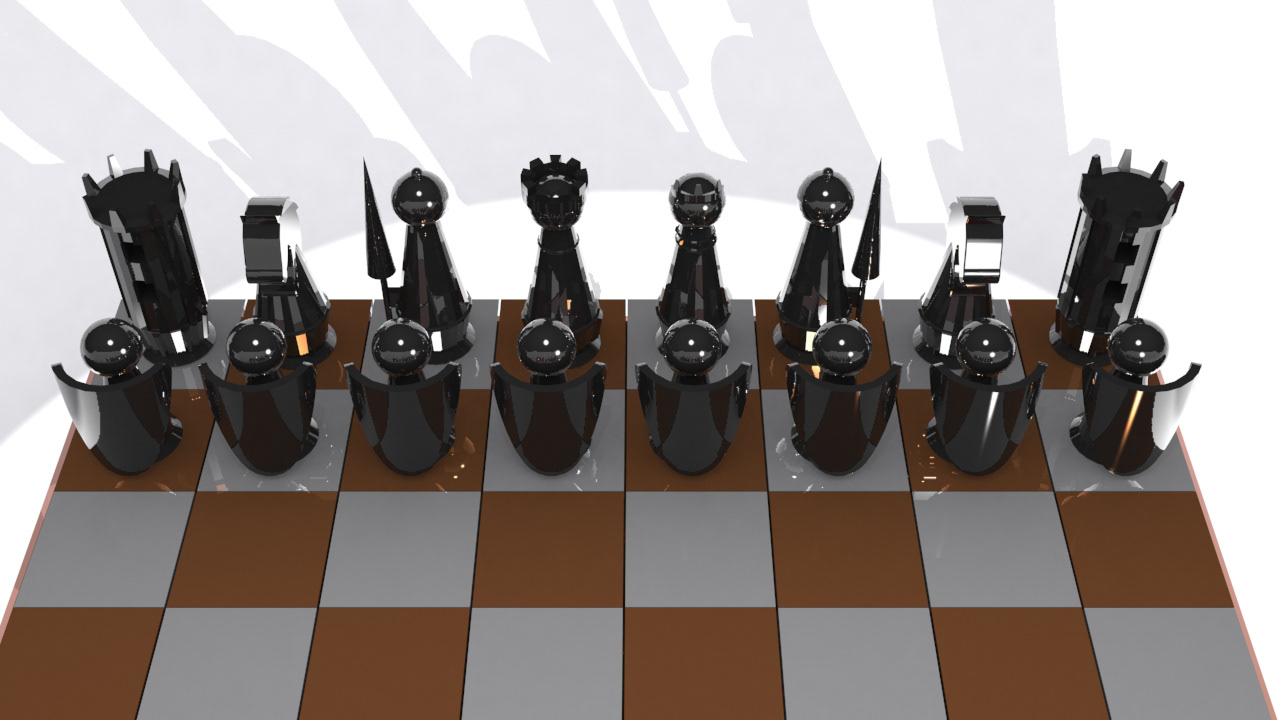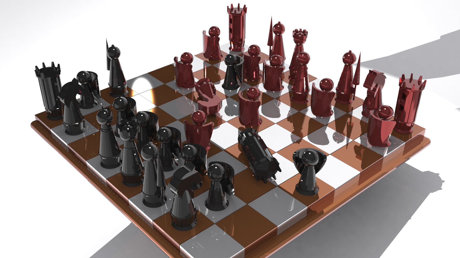 Trabajo de producción de modelado 3D Ajedrez con textura de metal.