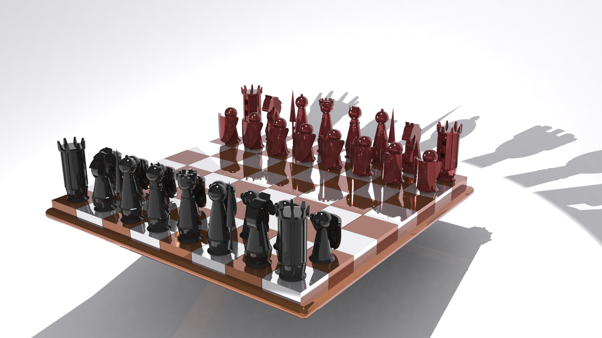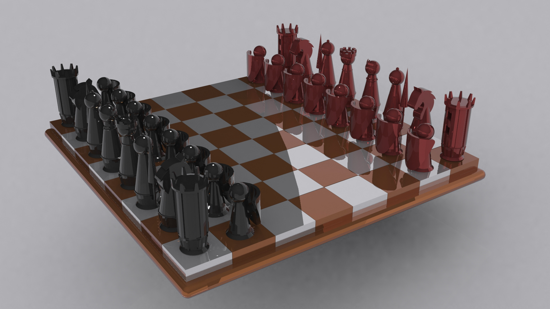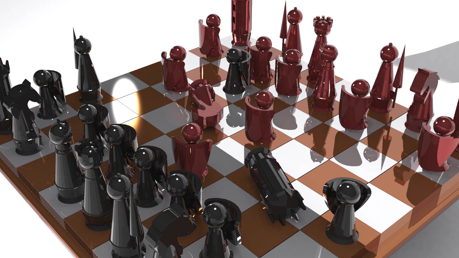 Trabajo de producción de modelado 3D Ajedrez con textura de metal.